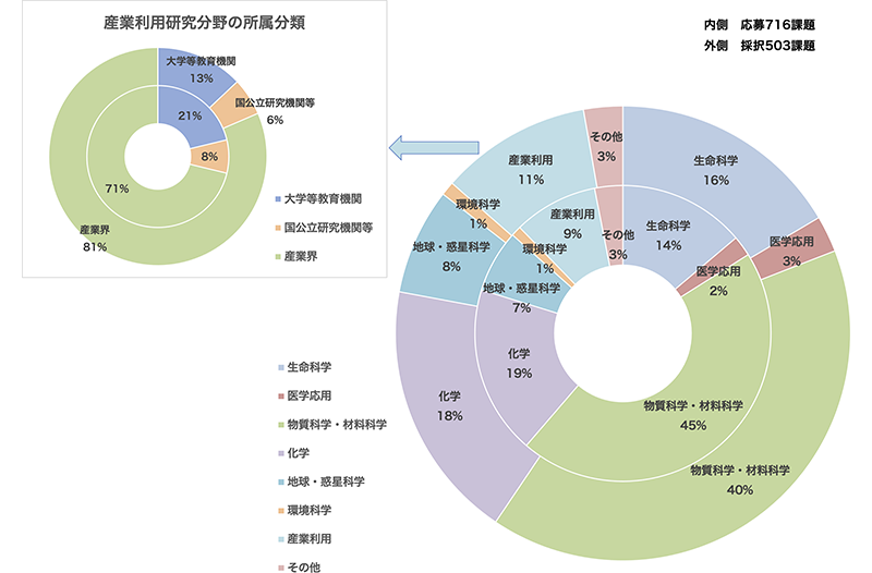 | * | 一般課題等のうちSPring-8における“SACLA、J-PARC MLFまたは「京」/「富岳」を含むHPCIと連携した利用を行う課題”は、SPring-8では応募13課題のうち9課題を採択。 |