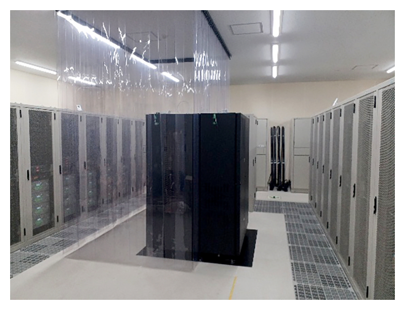 理研RSCは、「SPring-8データセンター構想」に基づき、電算機室(図2)を新たに整備し、クラスタ計算機システムを2023年10月から共用している。クラスタ計算機システムは、CPUノード64台、GPUノード16台、データ転送ノード6台、S3ゲートウェイ(後述)4台、共有ストレージシステムなどで構成される[2][2] https://dc-portal.spring8.or.jp/。クラスタ計算機の各ノードは高速ストレージシステムに広帯域で接続しており、高いI/O 性能が要求されるSPring-8の多くの解析に最適化された構成となっている。