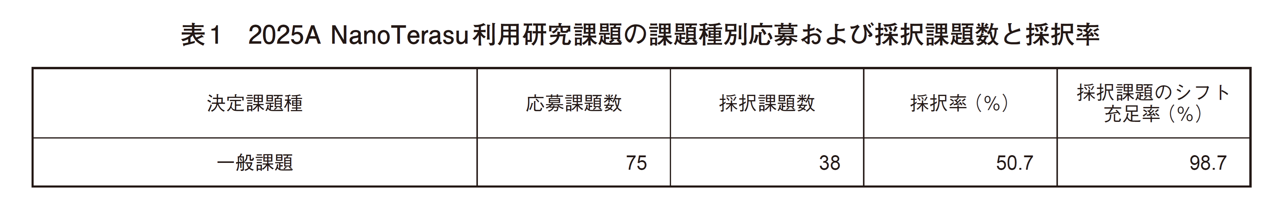 第1回(2025A)NanoTerasu利用研究課題の採択について